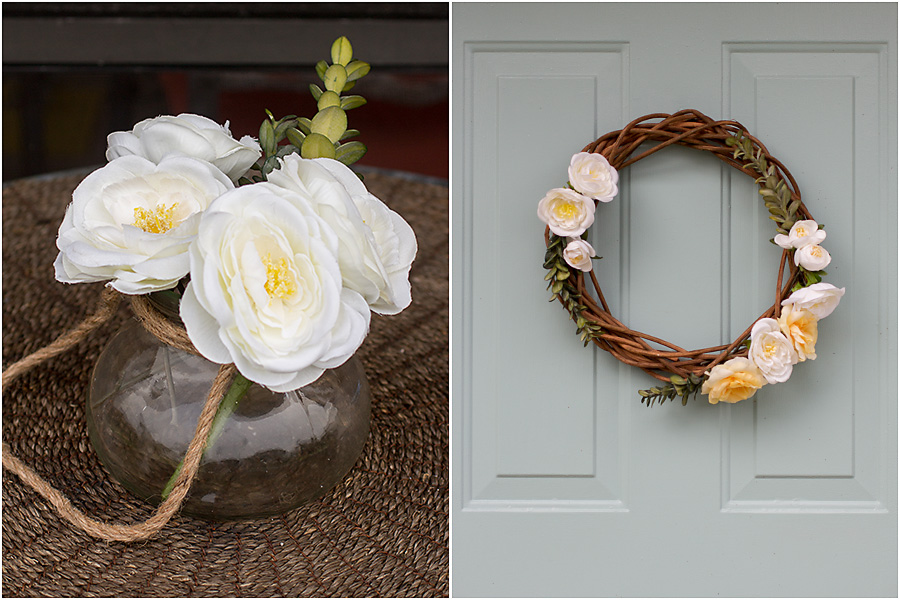 I ended up finding a grapevine wreath at a garage sale… put that with a 40% off Michael’s coupon… I decided to get crafty.